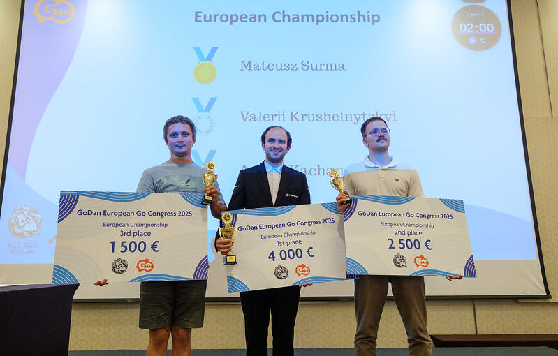 The European Championship was held on 20–27 July at the European Go Congress in Warsaw. As usual, it brought together 32 of the strongest European players, who fought first in a double-elimination system and then in a knockout format starting from the quarter-finals.